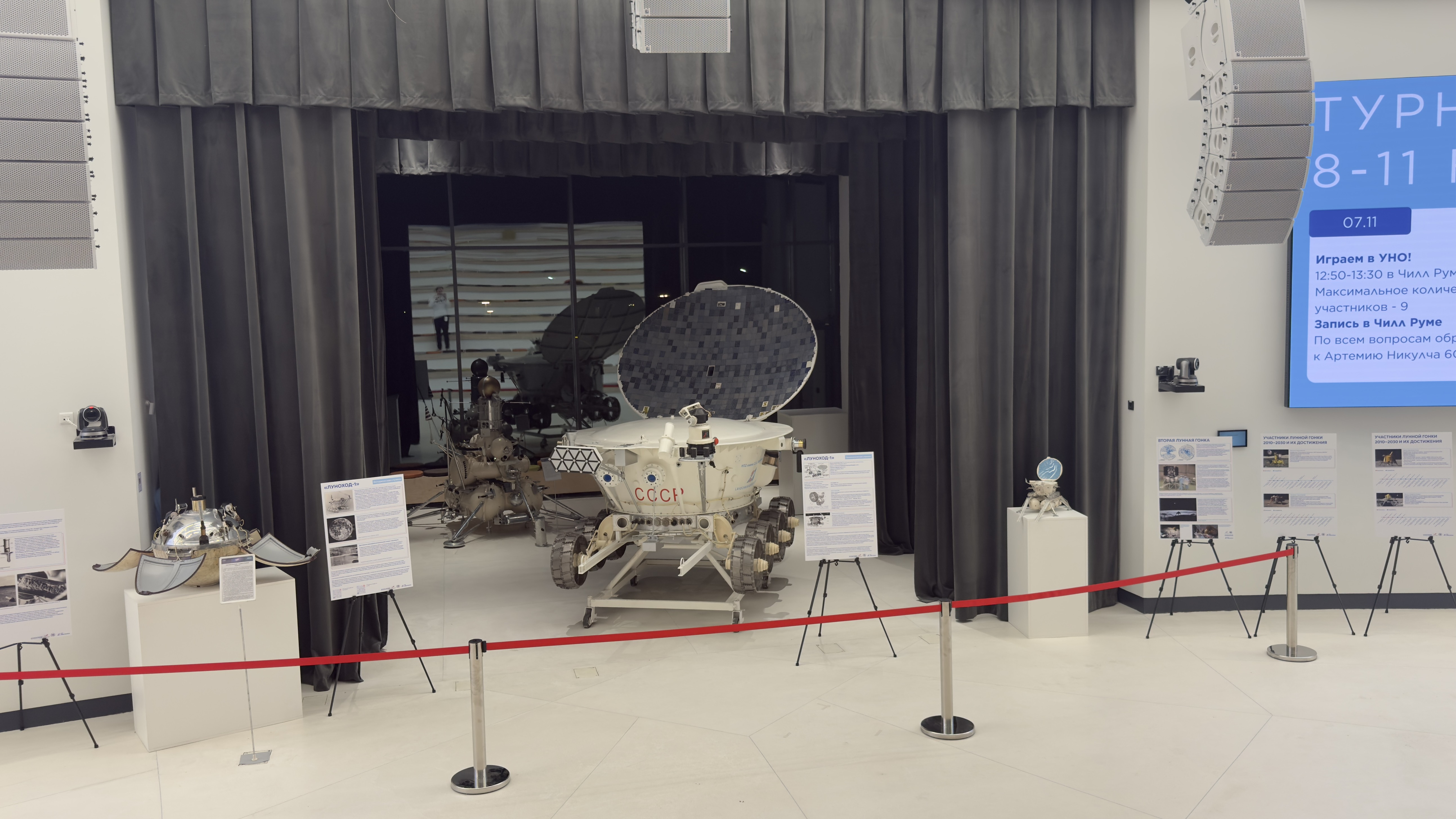 Экспонаты Выставочного центра ИКИ РАН на Выставке, посвященной 55-летию запуска автоматической самоходной станции «Луноход-1», г. Москва, Инновационная частная школа СКОЛКА (ОАНО «СКОЛКА») Инновационного центра Сколково, 07 ноября 2025 г. – 15 января 2026 г.
